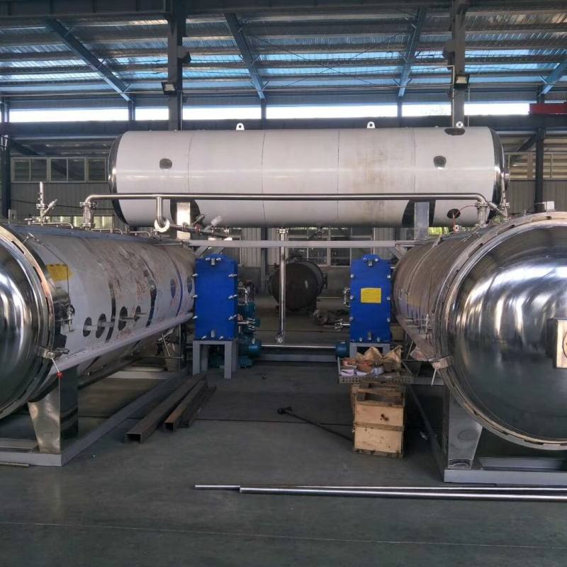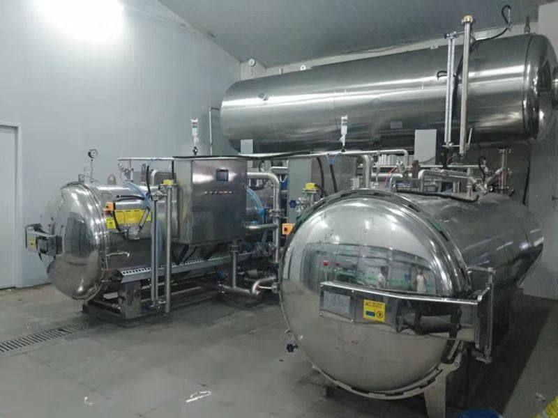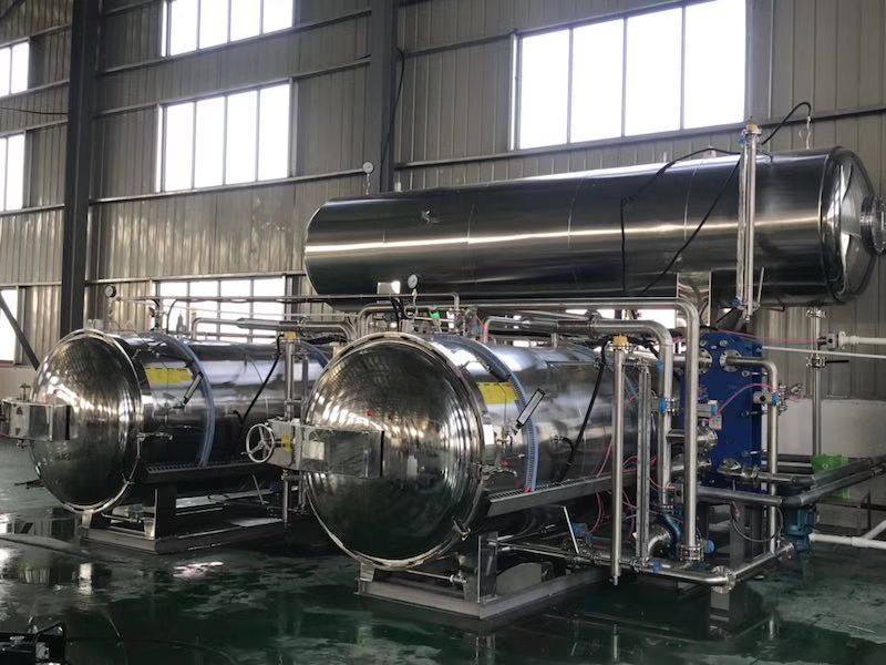 1.高温短时杀菌。两台杀菌釜共用一台热水罐工作,工艺水温度高,缩短了升温时间,双釜交替使用等待时间短,提高了工作效率;